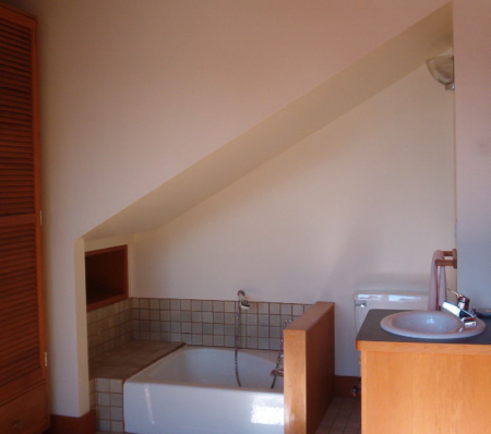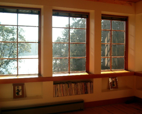 The fourth level is the third bedroom with a Pullman type bath and beautiful wood windows on three sides. The light-filled room could also be used as an art or sewing studio.