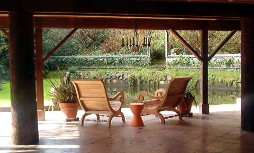 The ground level provides an entry experience passing by a large lily/koi pond stocked with a variety of fish. A separate private entry to a bedroom with its own private bath is at ground level as well as a large covered area for entertainment and kid's play. This private bedroom has beautiful hardwood floors, 180° views of the gardens and the koi pond and opens to the covered tile veranda. This level also connects to a 450 square foot container landscaped deck over the garage.